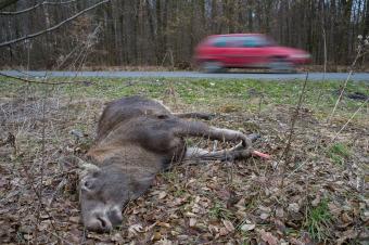 Martwa klępa, wyglądała na ciężarną. Potrącona ze skutkiem śmiertelnym przez samochód. Znaleziona na poboczu drogi (około 4 m od jezdni)
