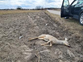 Osobnik sarny został potrącony. Znajdował się na poboczu. Zdarzenie miało miejsce na mniej niż godzinę przed obserwacją ze względu na wyczuwalne ciepło osobnika.