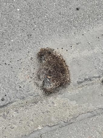 Skóra jeża wraz z kolcami, ciężko zidentyfikować konkretny gatunek ze względu na stan obserwowanego zwierzęcia