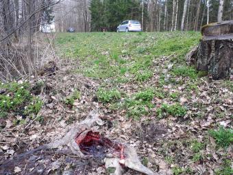 Enklawa lasu z podmokłymi obszarami po obu stronach drogi, w pobliżu również występowały ślady innych ssaków, w tym łosi.