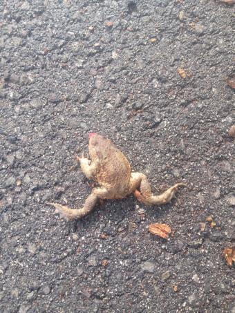Ropuchy na całym nasłonecznionym odcinka drogi z Lędzin do Suchego Boru (w miejscach wyrębu drzew) W rożnym stanie rozjechania.