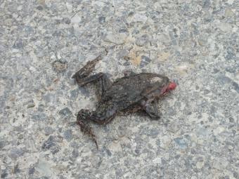 dolina rzeki ze stawami, najwięcej martwych ropuch przy ujściach suchych wąwozów