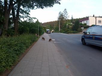 stado z trzech loch i około 30 młodych (tegorocznych) przemieszczały się w obrębie ulic... w okolicy 100m las/park krajobrazowy