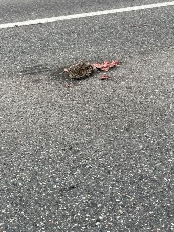 Błońska 54, Nadarzyn, kolejny już rozjechany jeż w tym miejscu.