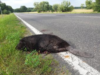 Ten bóbr szedł do oczka wodnego. Na “ostatniej prostej” został potrącony przez samochód. Zdarzyło się to na drodze wojewódzkiej 579, w okolicach Łubca.