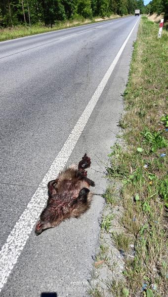 Drugi potrącony borsuk w tej okolicy. Wcześniejsza obserwacja miesiąc temu. Sadząc po wielkości; samica lub młody osobnik.